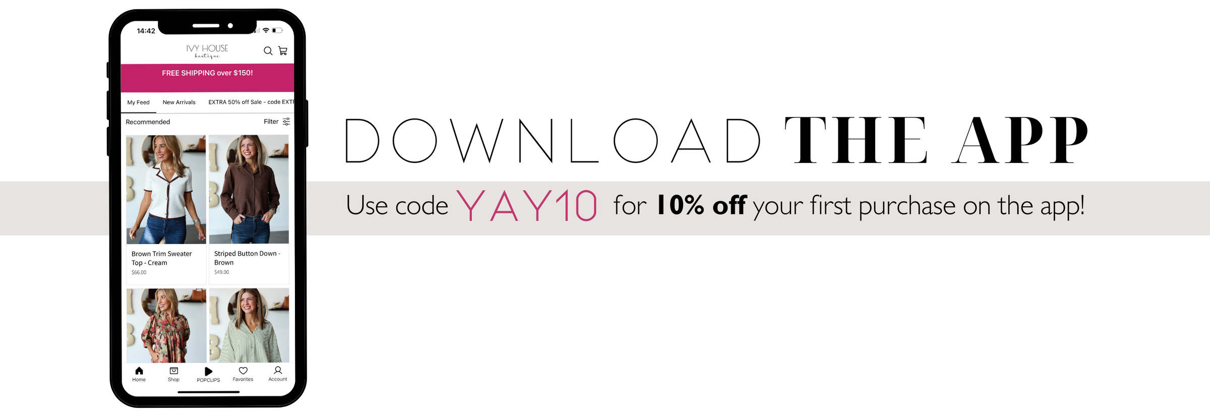 Ivy House Boutique opened in 2018 with one goal: to serve you! We love fashion, but we love people even more. We offer trendy, chic, classic clothing – pieces you'll be reaching for for years to come. We want to help you find your own unique style so you can feel confident inside and out.
