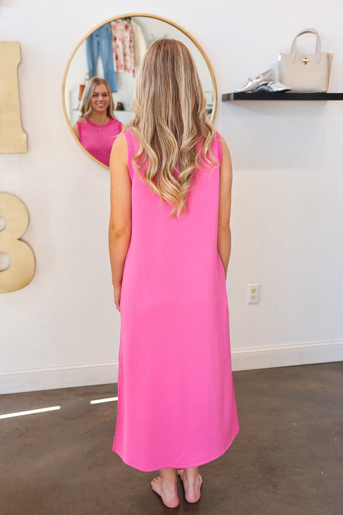 Contrast Trim Maxi Scuba Dress - Pink