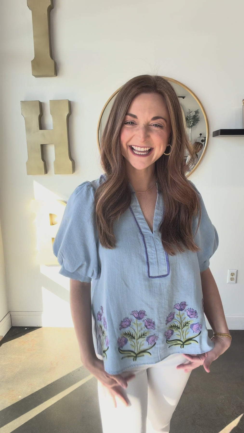 Embroidered Floral Top - Blue