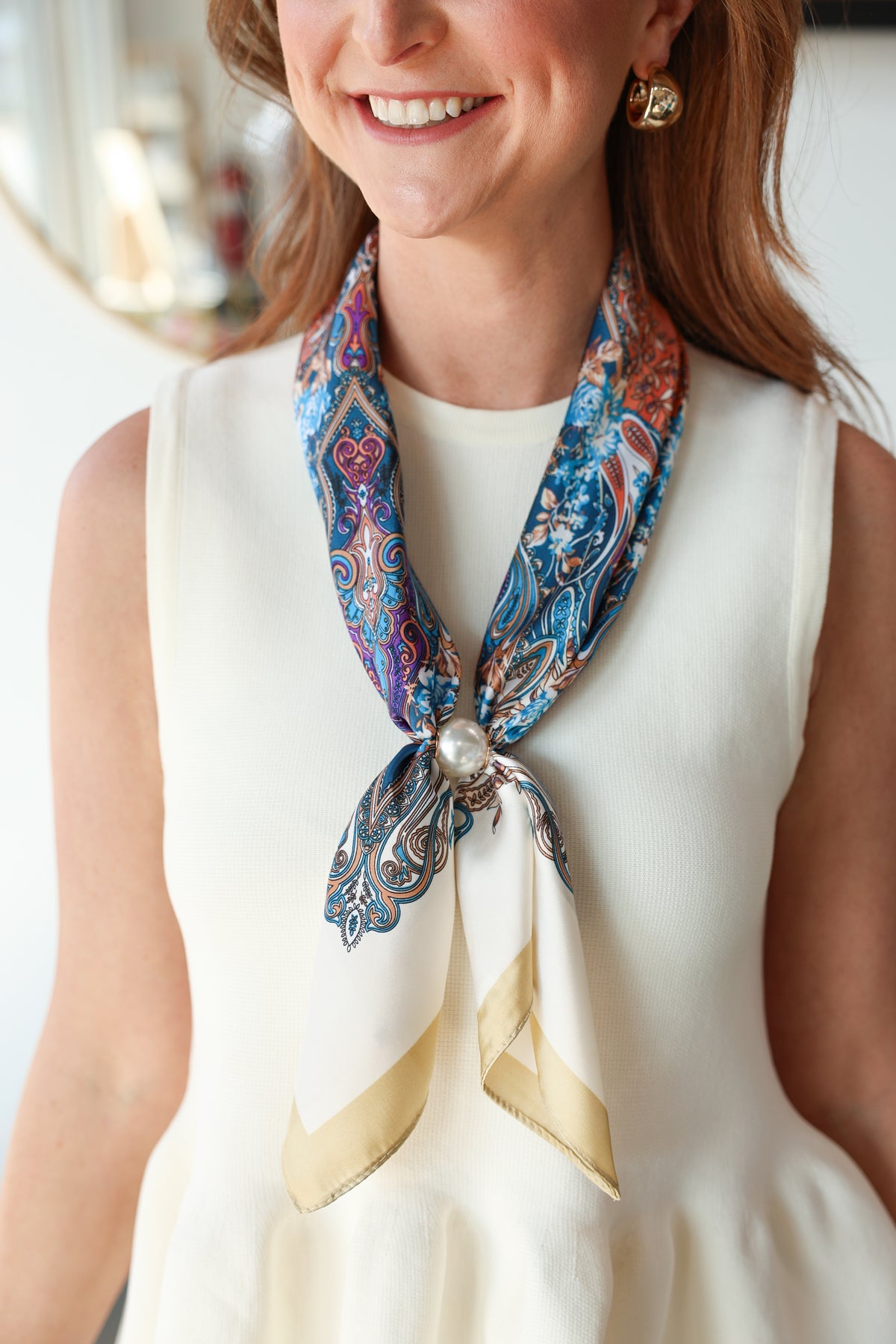 Pearl Magnetic Scarf - Coral/Blue