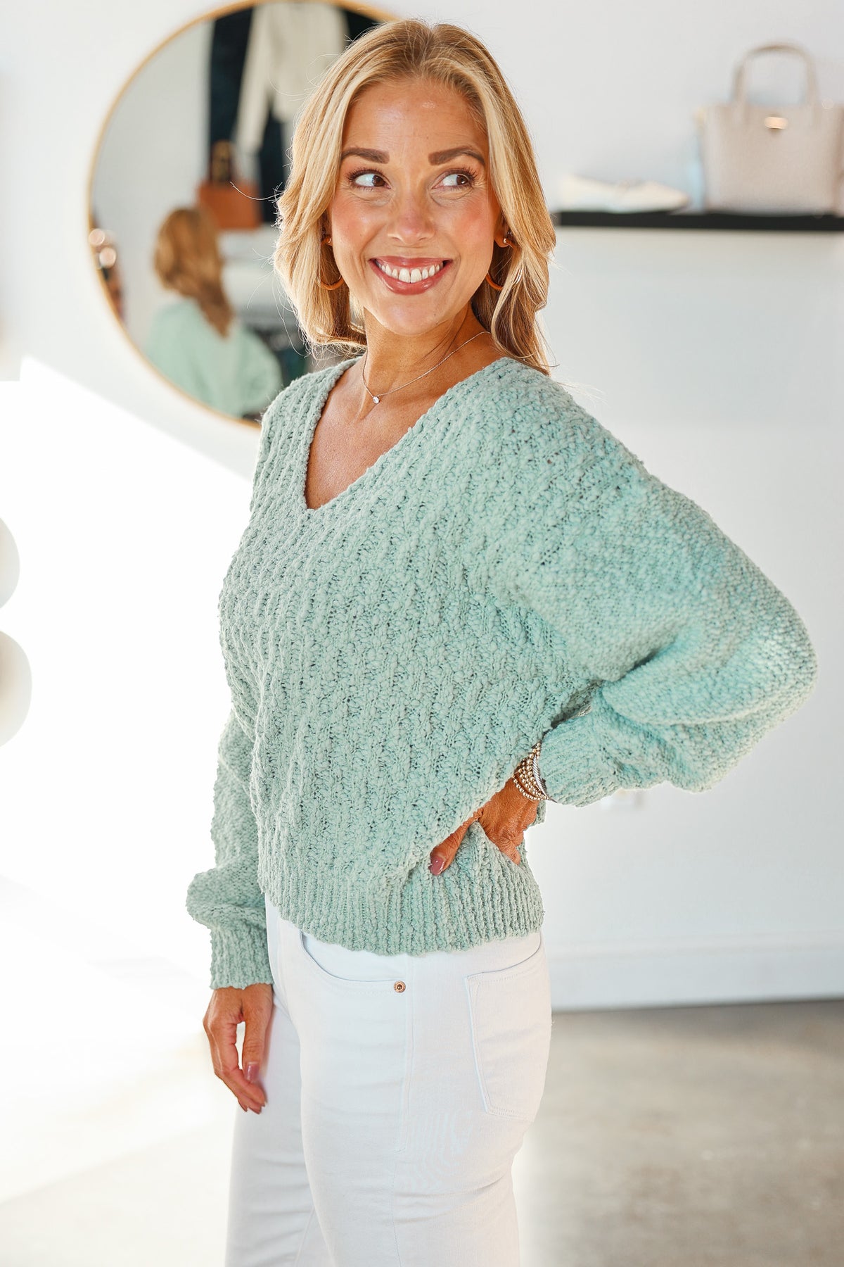 Textured Knit Sweater - Iceberg Green