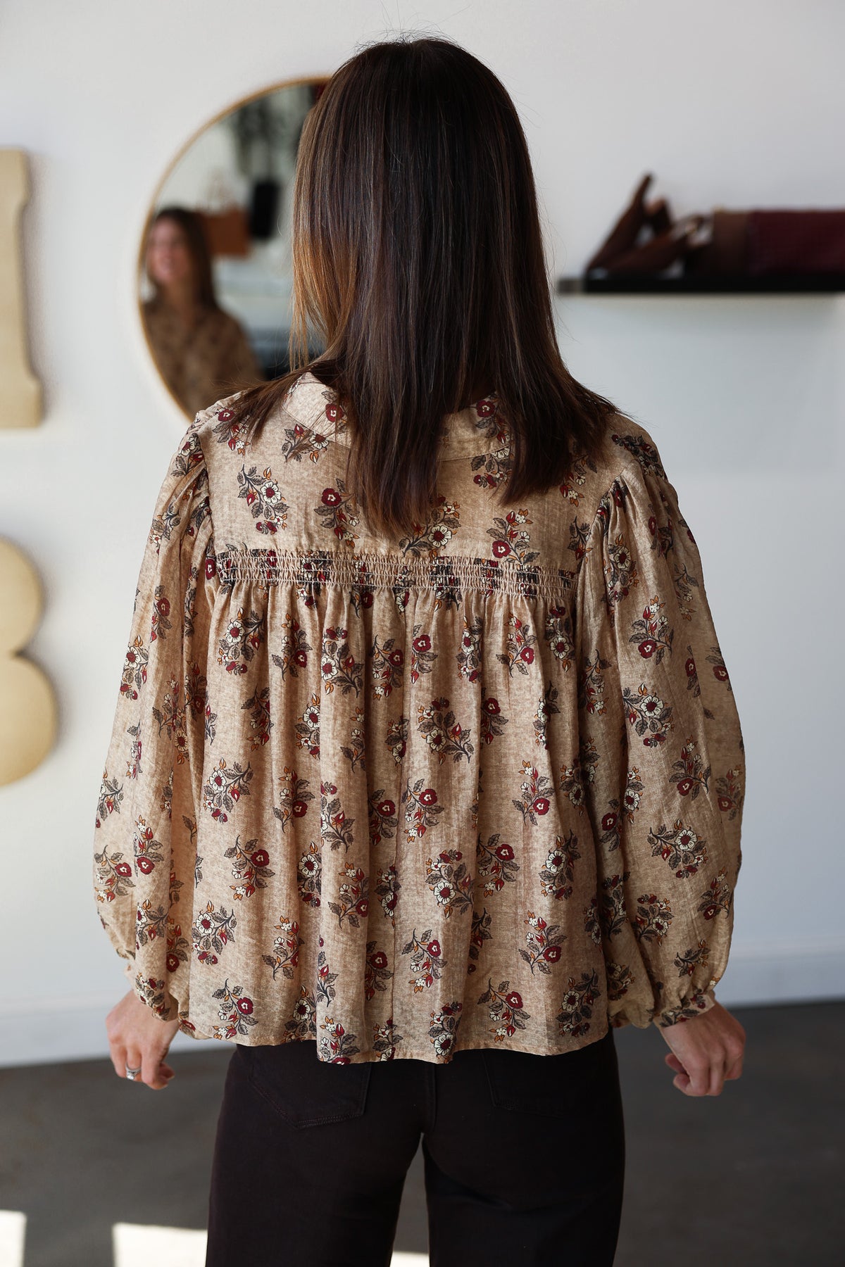 Floral Print Button Down Top - Taupe