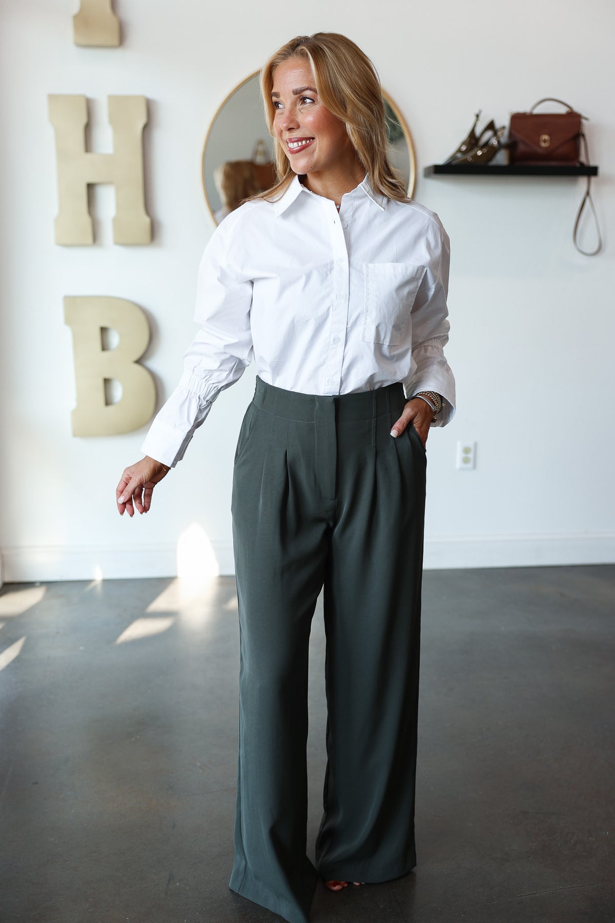 Wide Leg Dress Pants - Dark Green