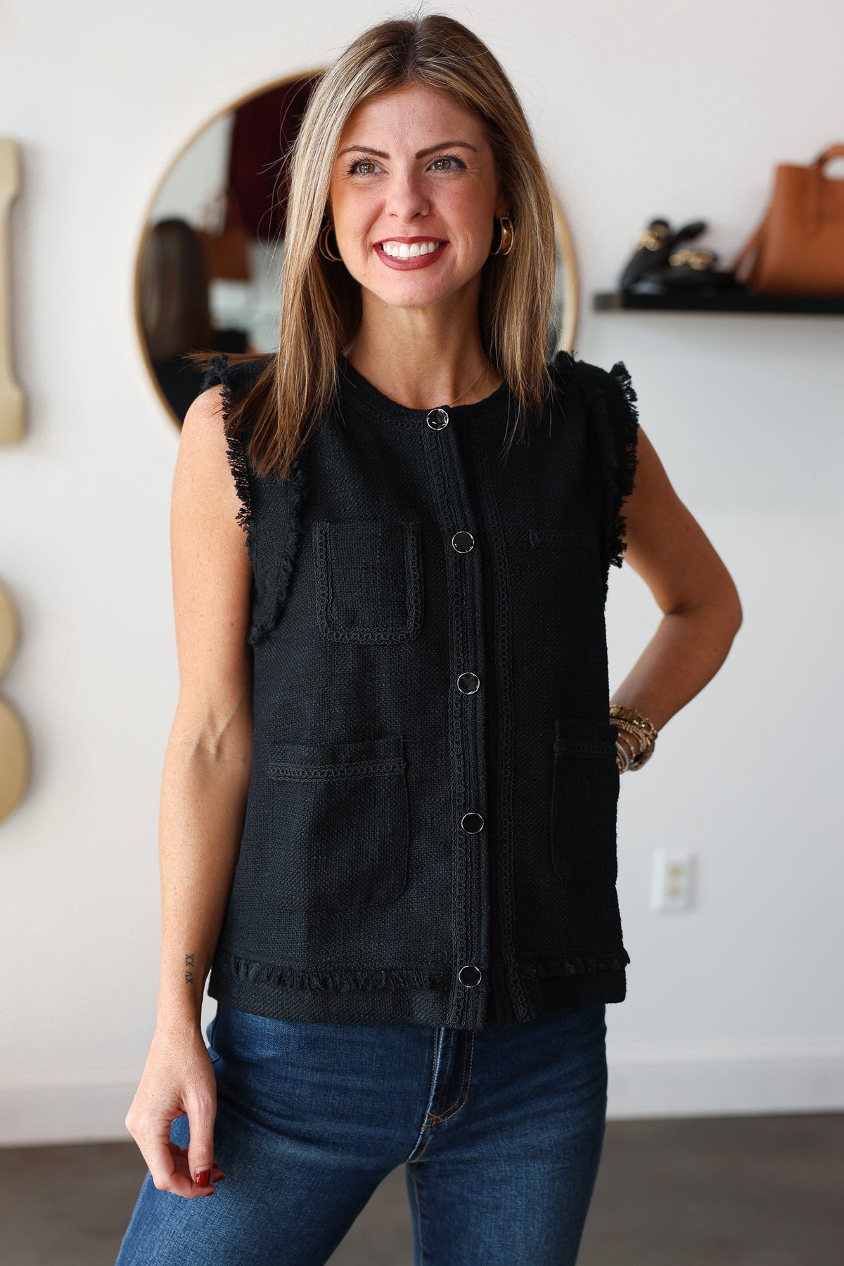 Fringe Trim Vest - Black
