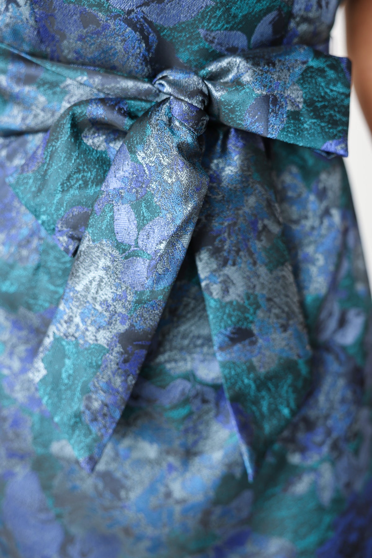 Tie Waist Jacquard Mini Dress- Navy