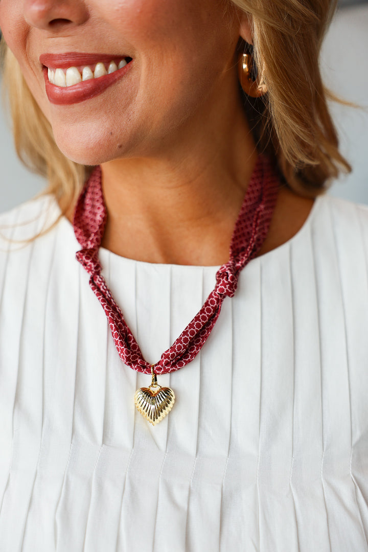 Scarf Charm Necklace - Burgundy