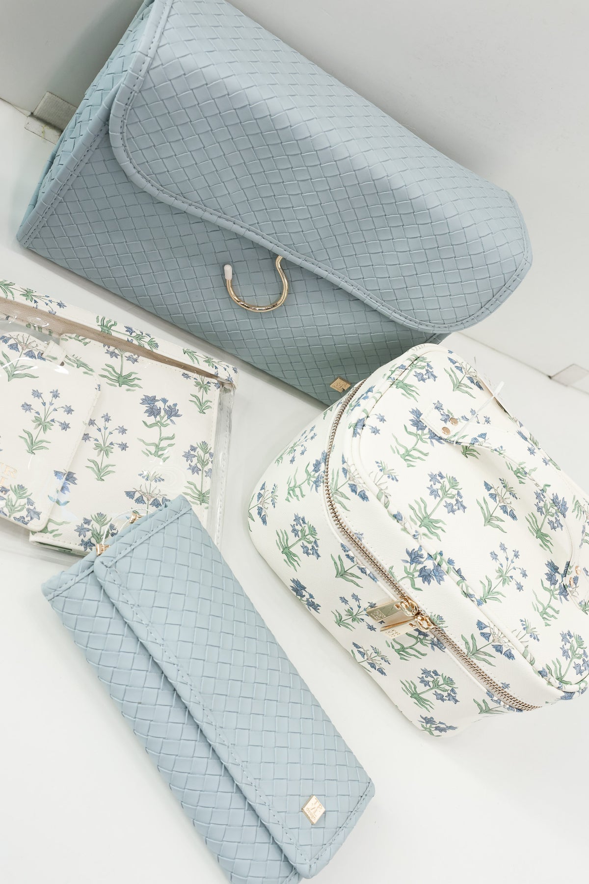 Our Luxe Woven Jewelry Wallet in Surf is a chic refresh of a TRVL favorite, designed to keep your jewelry secure and organized wherever you go. With smart interior details and a coordinating pinstripe lining, it’s a polished essential that pairs beautifully with the entire TRVL collection.