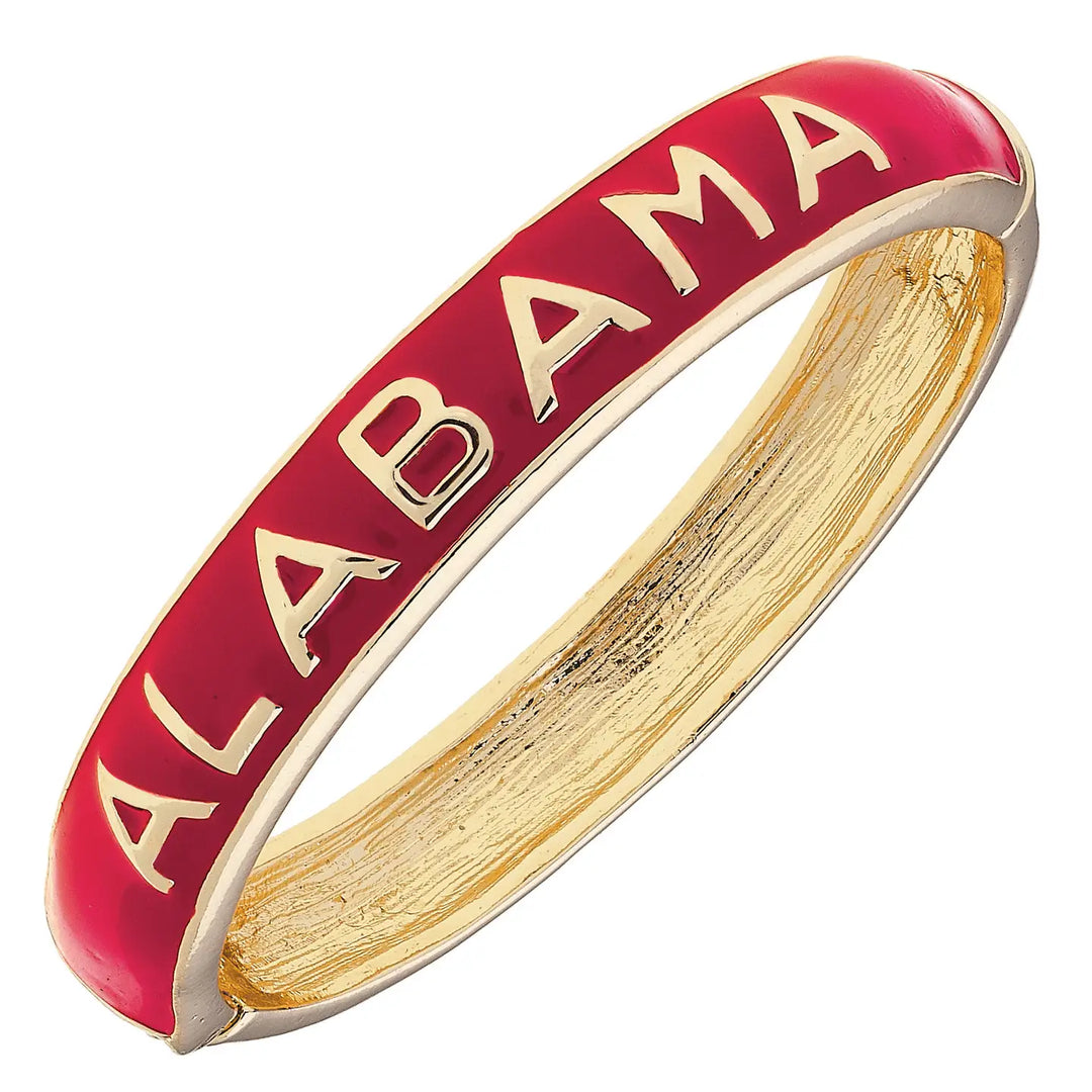 The Alabama Crimson Tide Sculpted Enamel Checkered Hinge Bangle combines iconic team spirit with a preppy design. Crafted in shiny gold, this bangle adds a chic and sporty touch to any fan’s jewelry collection.