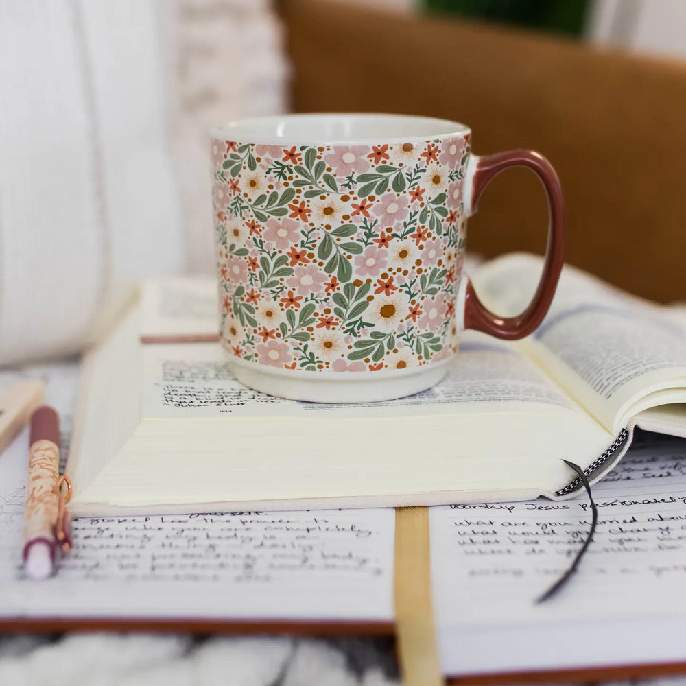 Start your morning off with some joy! The Almond Blossom Mug features a bright floral print with maroon accent displayed on the handle. Handcrafted with care, this 11 oz. mug is perfect for your daily routine or as a special gift for a friend. Hand wash with soap for best results.