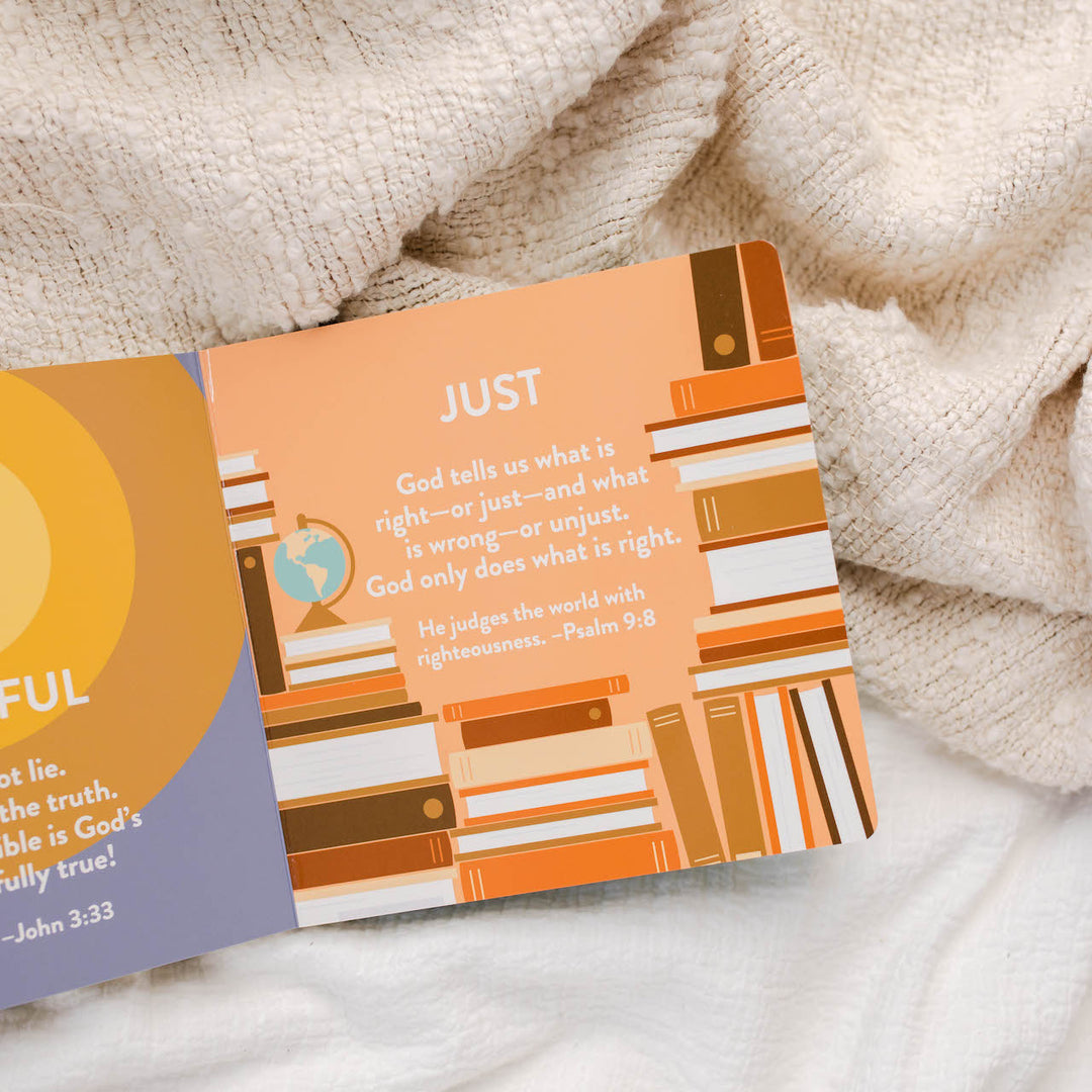 We cannot see or touch God, so how can we know Him? This is a question many children have. The Attributes of God Board Book will introduce your child to 10 things the Bible teaches us about who God is. Written with the youngest children in mind, this 10-page book will introduce your child to who God is in simple terms and with beautiful illustrations. The board book measures 7”x7”, making it great for learning at home or fitting easily into a diaper bag for on-the-go!