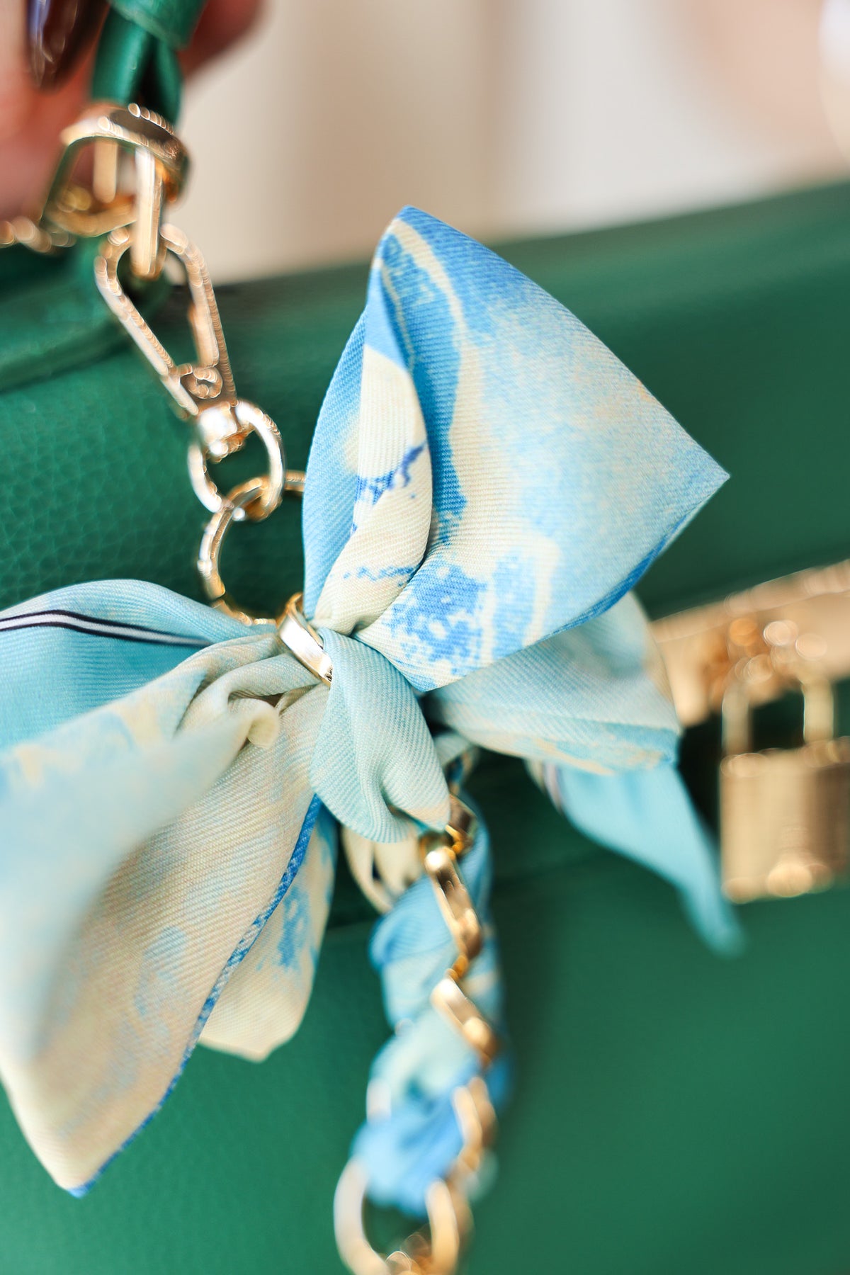 Elevate your everyday style with our exquisite Handbag Charm, a perfect blend of sophistication and modern flair. This stunning accessory is designed to instantly transform any handbag, tote, or backpack into a statement piece, reflecting your unique taste and attention to detail. Its vibrant patterned bow, gracefully intertwined with a radiant gold-tone chain, offers a touch of luxury that catches the eye and complements any outfit.
