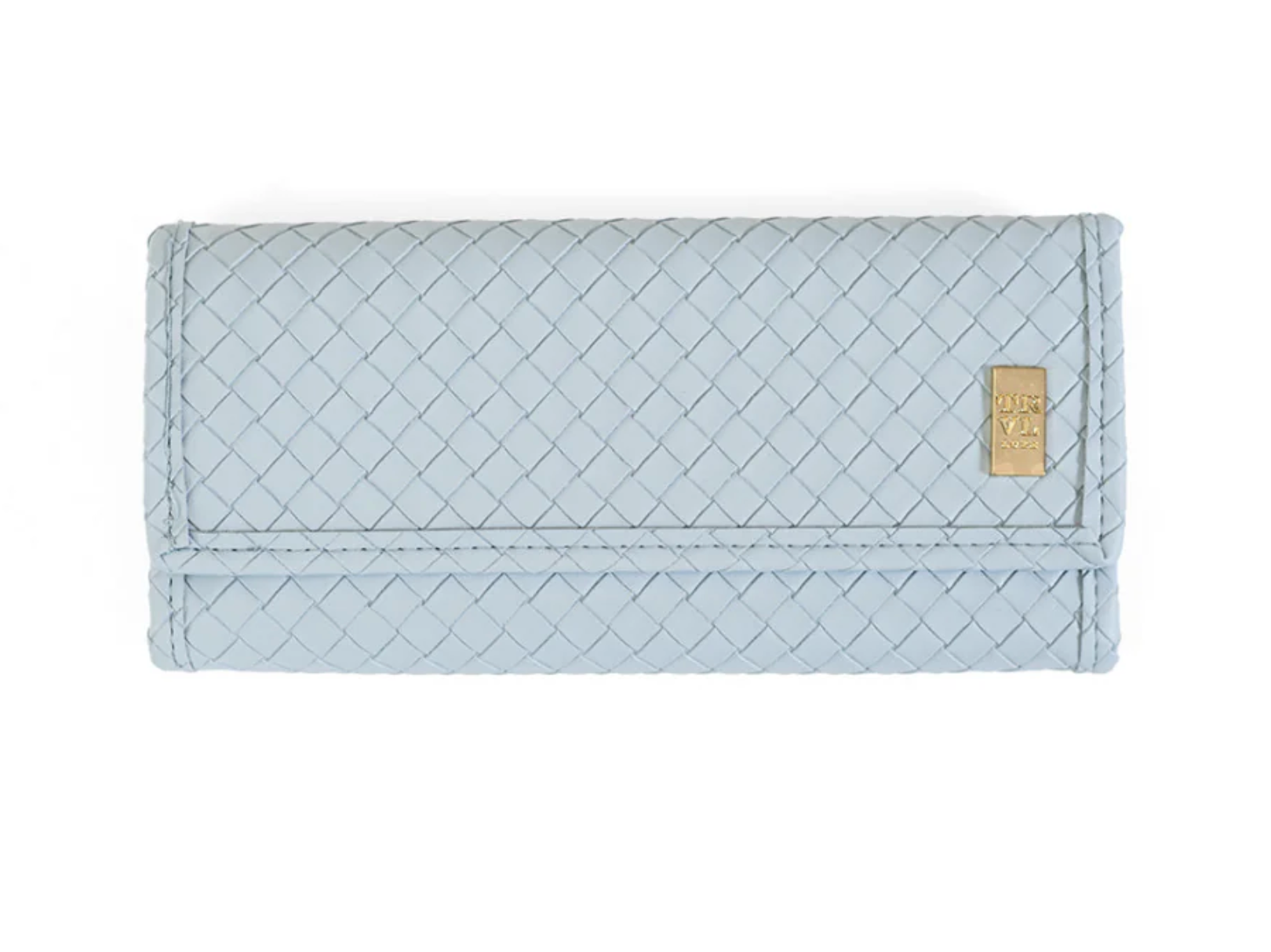 Our Luxe Woven Jewelry Wallet in Surf is a chic refresh of a TRVL favorite, designed to keep your jewelry secure and organized wherever you go. With smart interior details and a coordinating pinstripe lining, it’s a polished essential that pairs beautifully with the entire TRVL collection.