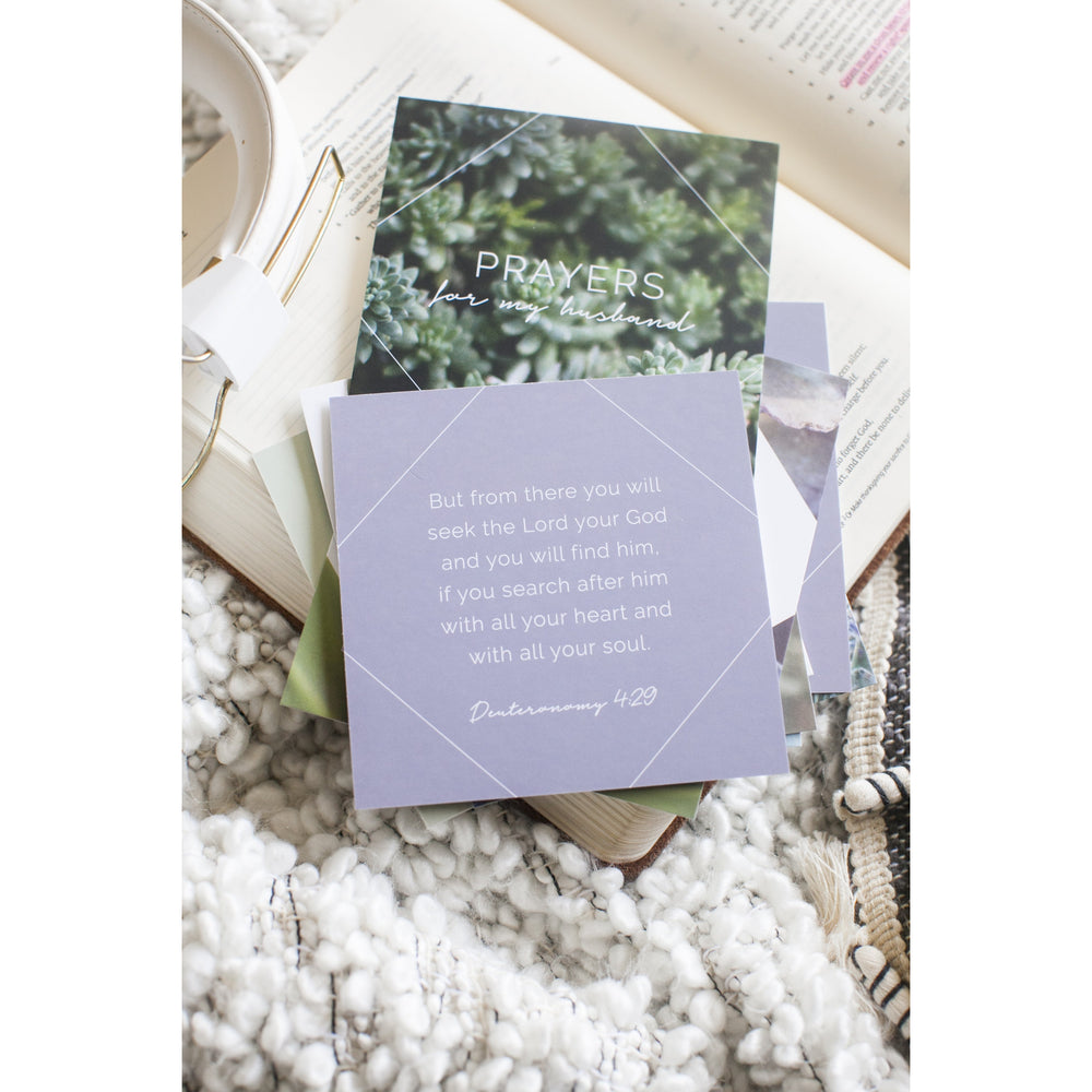 This set of 11 cards includes 10 cards designed to help you pray for your husband, and a cover card. One side of the cards contains a Scripture to meditate on and pray through, and the other side has a prompt to help you pray specifically and intentionally. Each card focuses on praying a specific thing for your husband and gives Scripture to read and pray as well. Keep this in your Bible, put them on a ring, or hang them somewhere you will see them often.