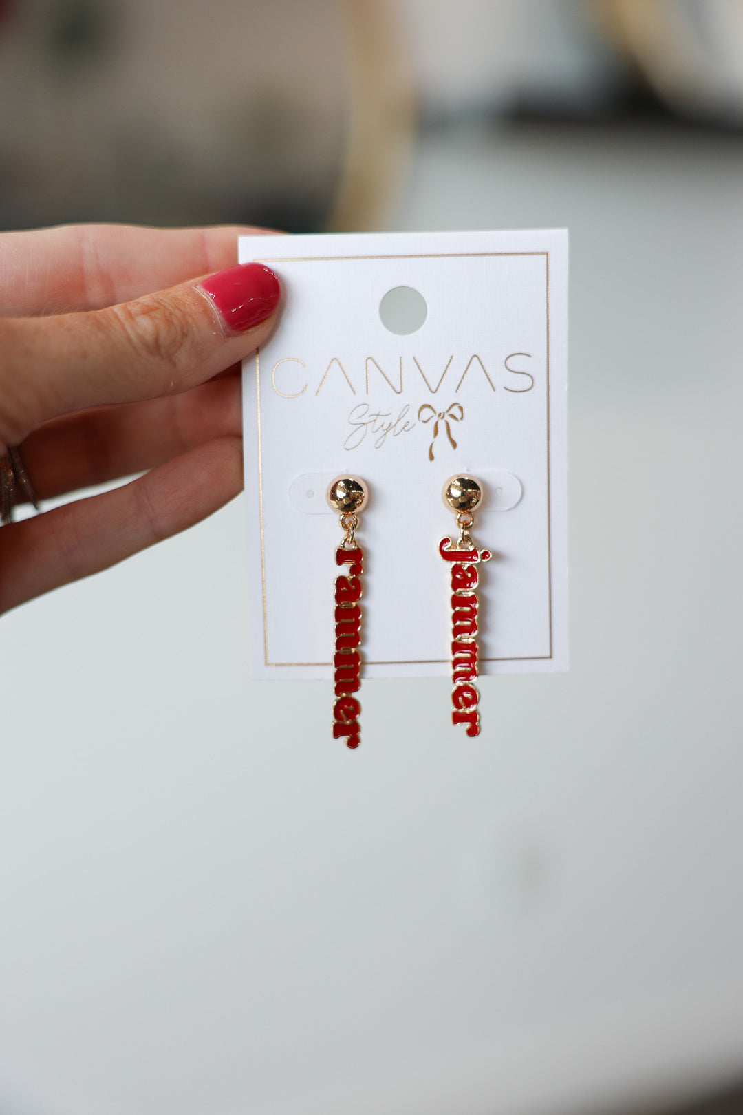 Make a bold statement with the Alabama Crimson Tide Slogan Earrings. Featuring the team’s iconic slogan in striking crimson, these earrings are crafted in shiny gold for a polished look. Perfect for fans who want to show off their team spirit in a stylish, preppy way. DETAILS