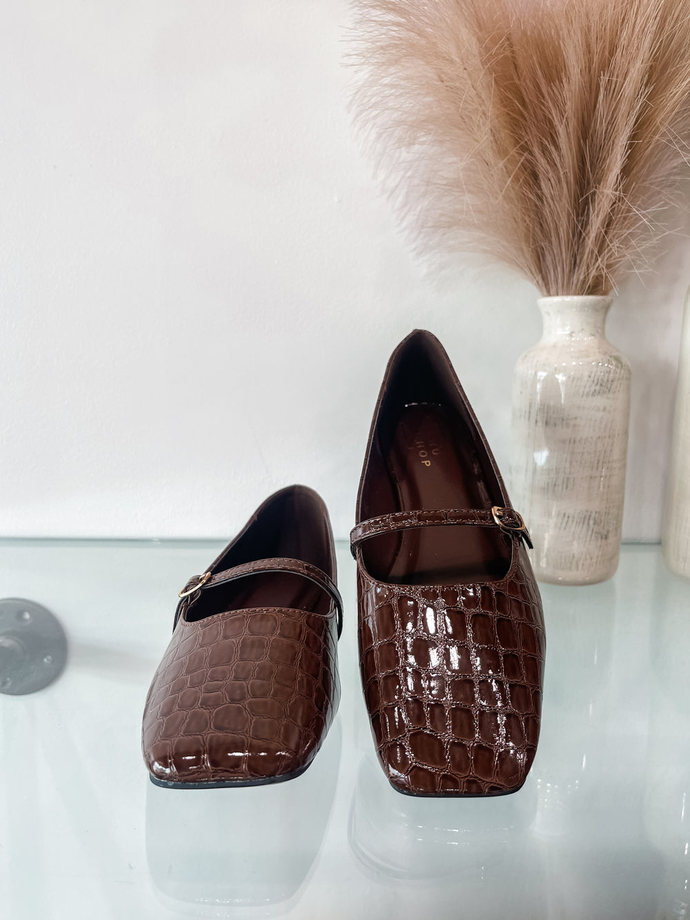 • Closure: Slim Mary Jane strap with gold-tone buckle