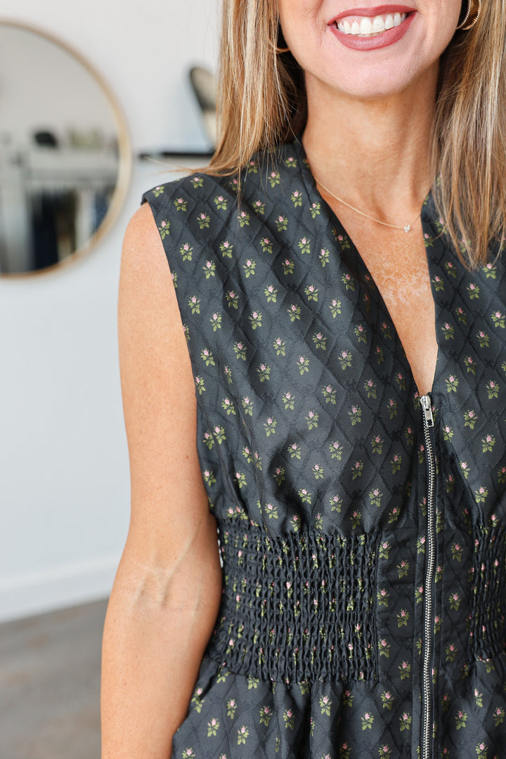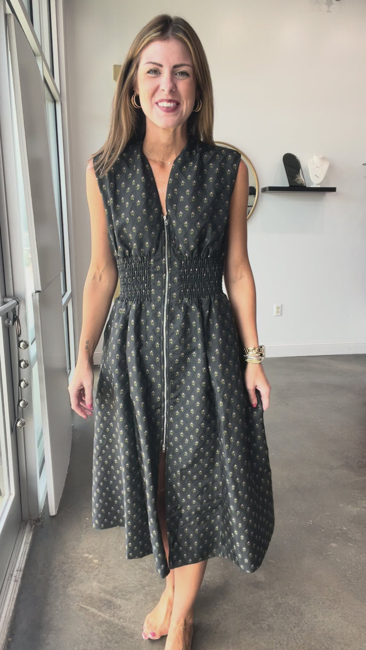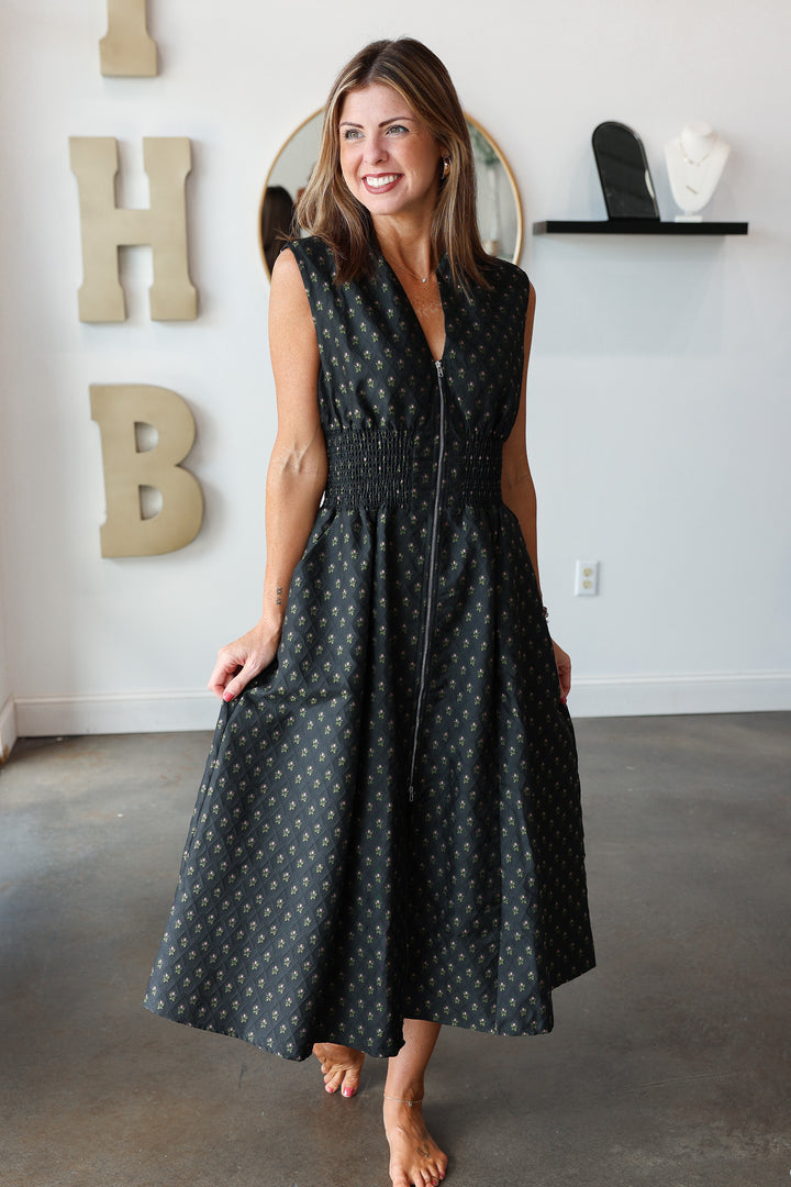 Smocked Waist Midi Dress - Black