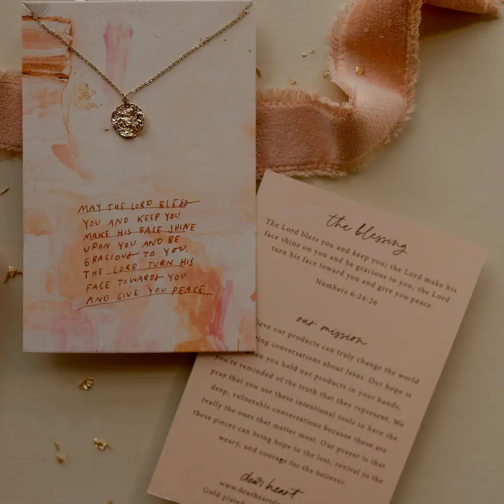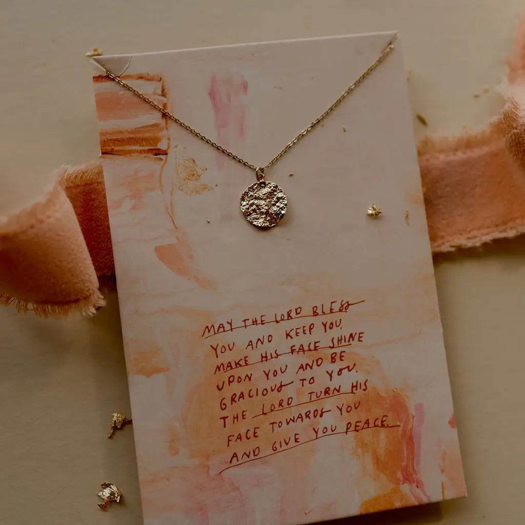 The Lord bless you and keep you; the Lord make his face shine on you and be gracious to you; the Lord turn his face toward you and give you peace. Numbers 6:24-26 You will be provided for and blessed beyond your needs. He is the God who does exceedingly and abundantly more than we could ask, hope, or imagine. Every good gift is from Him. When you choose to follow Jesus, not only will you be blessed, but generations will be blessed because of your choice. Your obedience to His voice will be honored and rewarded. You will be blessed. Even when the blessing doesn’t look exactly like you thought or hoped, you are blessed because He is faithful. He always knows what is best. We chose a textured disc to represent God's face shining towards us with the tiniest crystal dot in it to represent how we are held loved by Him every step of the way.