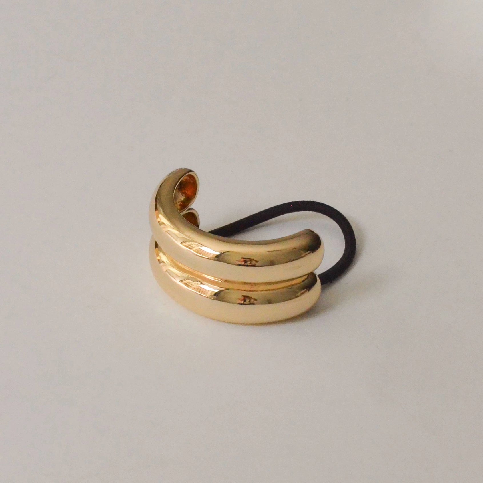 Wide Double Arch Metal Ponytail Hair Tie | Gold